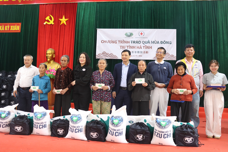 Bà Trần Thị Hải Việt - Phó Chủ tịch Hội CTĐ tỉnh nhấn mạnh: Chương trình tặng quà mùa Đông là hoạt động nhân đạo thường niên của Tổ chức từ thiện Tzu Chi (Đài Loan), được triển khai tại nhiều quốc gia, trong đó có Việt Nam, nhằm kịp thời hỗ trợ các hộ nghèo, cận nghèo và đối tượng dễ bị tổn thương trong mùa Đông và dịp Tết Nguyên đán. Đây cũng là hoạt động ý nghĩa trong chuỗi chương trình “Tết Nhân ái – Xuân Bính Ngọ năm 2026” do Hội Chữ thập đỏ tỉnh Hà Tĩnh triển khai, góp phần cùng cấp ủy, chính quyền địa phương chăm lo đời sống Nhân dân, để mọi người, mọi nhà đều có Tết ấm áp, nghĩa tình.