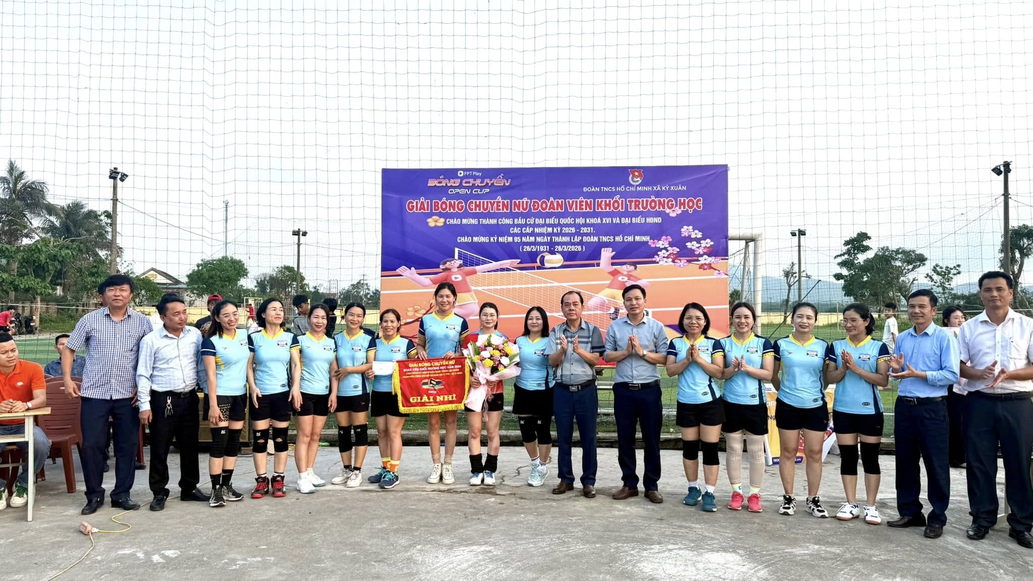 Theo đó, Đoàn TNCS Hồ Chí Minh xã Kỳ Xuân phối hợp Công ty Cổ phần viễn thông FPT - Chi nhánh Hà Tĩnh vừa tổ chức giải bóng chuyền nữ đoàn viên khối trường học năm 2026 chào mừng thành công cuộc bầu cử Đại biểu quốc hội khóa XVI và đại biểu HĐND các cấp nhiệm kỳ 2026-2031; chào mừng 95 năm ngày thành lập Đoàn TNCS Hồ Chí Minh 26/3/1931-26/3/2026).