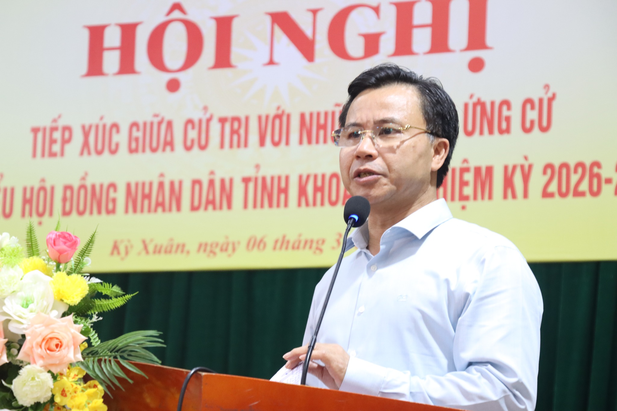 Tham dự hội nghị có ứng cử viên Phan Thiên Định – Phó Bí thư Tỉnh ủy, Chủ tịch UBND tỉnh và 7 ứng cử viên đại biểu HĐND tỉnh; về phía xã Kỳ Xuân có đồng chí Lâm Ngọc Dũng – Bí thư Đảng ủy, Chủ tịch HĐND xã cùng các đồng chí trong BTV, BCH Đảng ủy xã; và đông đảo cử tri trên địa bàn xã.