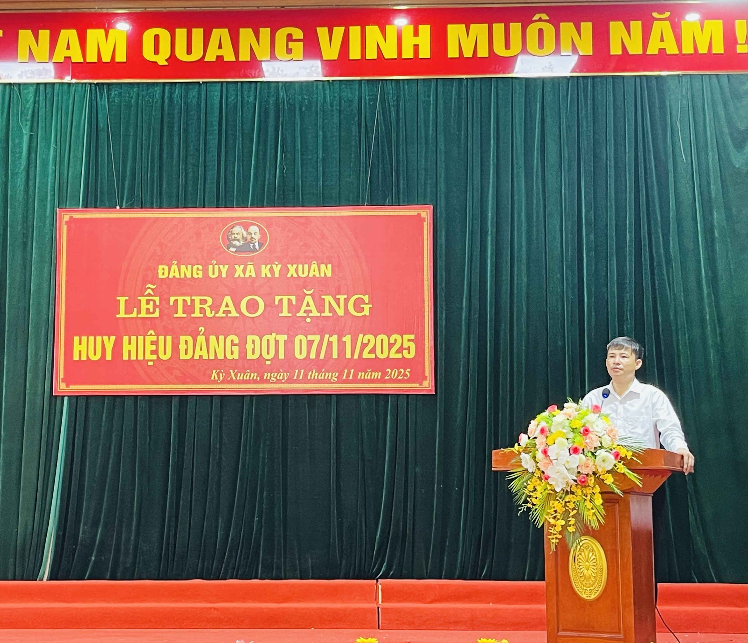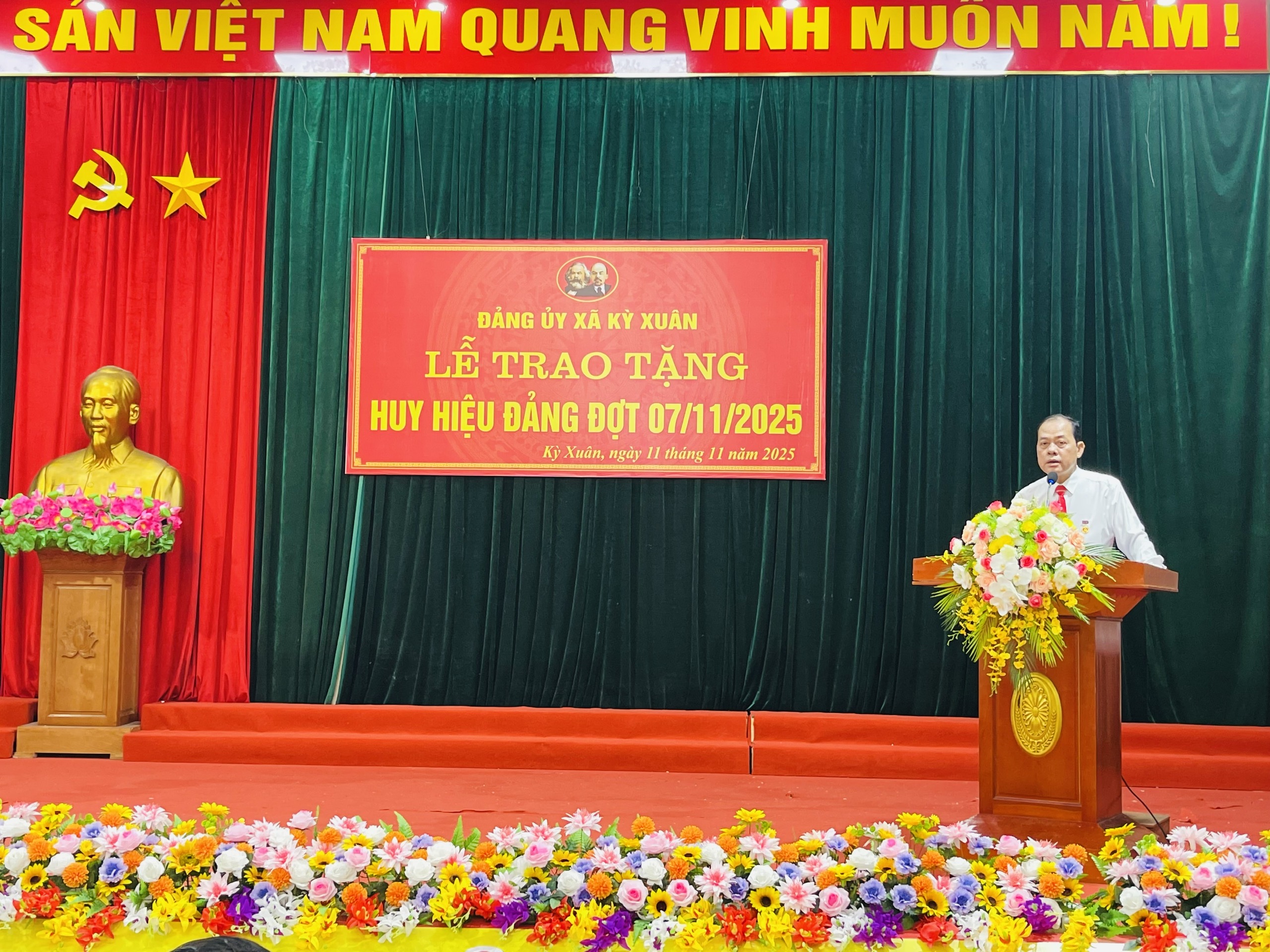 Đại diện các đồng chí được tặng Huy hiệu Đảng, đồng chí Lê Công Thắng - Bí thư Chi bộ- Hiệu trưởng Trường tiểu học Kỳ Xuân đã phát biểu cảm tưởng, bày tỏ niềm vinh dự và sự tri ân sâu sắc đối với Đảng. Đồng chí cho biết bản thân được nhận Huy hiệu 30 năm tôi cho rằng "Huy hiệu Đảng là phần thưởng, danh hiệu cao quý", xứng đáng dành cho các đảng viên; là sự đánh giá, sự ghi nhận nghiêm túc về công lao và quá trình cống hiến của Đảng viên đối với sự nghiệp cách mạng của Đảng, của dân tộc. Đây không chỉ là niềm tự hào của chúng tôi và gia đình, mà còn là niềm tự hào của Đảng bộ, Chi bộ và Nhân dân xã Kỳ Xuân. Xin hứa tuyệt đối trung thành với lý tưởng của Đảng, chấp hành nghiêm chỉnh Cương lĩnh, Điều lệ, nghị quyết, chỉ thị của Đảng và pháp luật Nhà nước; tiếp tục rèn luyện bản thân, không ngừng học tập, đấu tranh chống chủ nghĩa cá nhân, tham nhũng, tiêu cực. luôn liên hệ chặt chẽ với nhân dân, tuyên truyền, vận động nhân dân thực hiện đường lối, chính sách của Đảng và pháp luật Nhà nước, tích cực tham gia xây dựng Đảng.