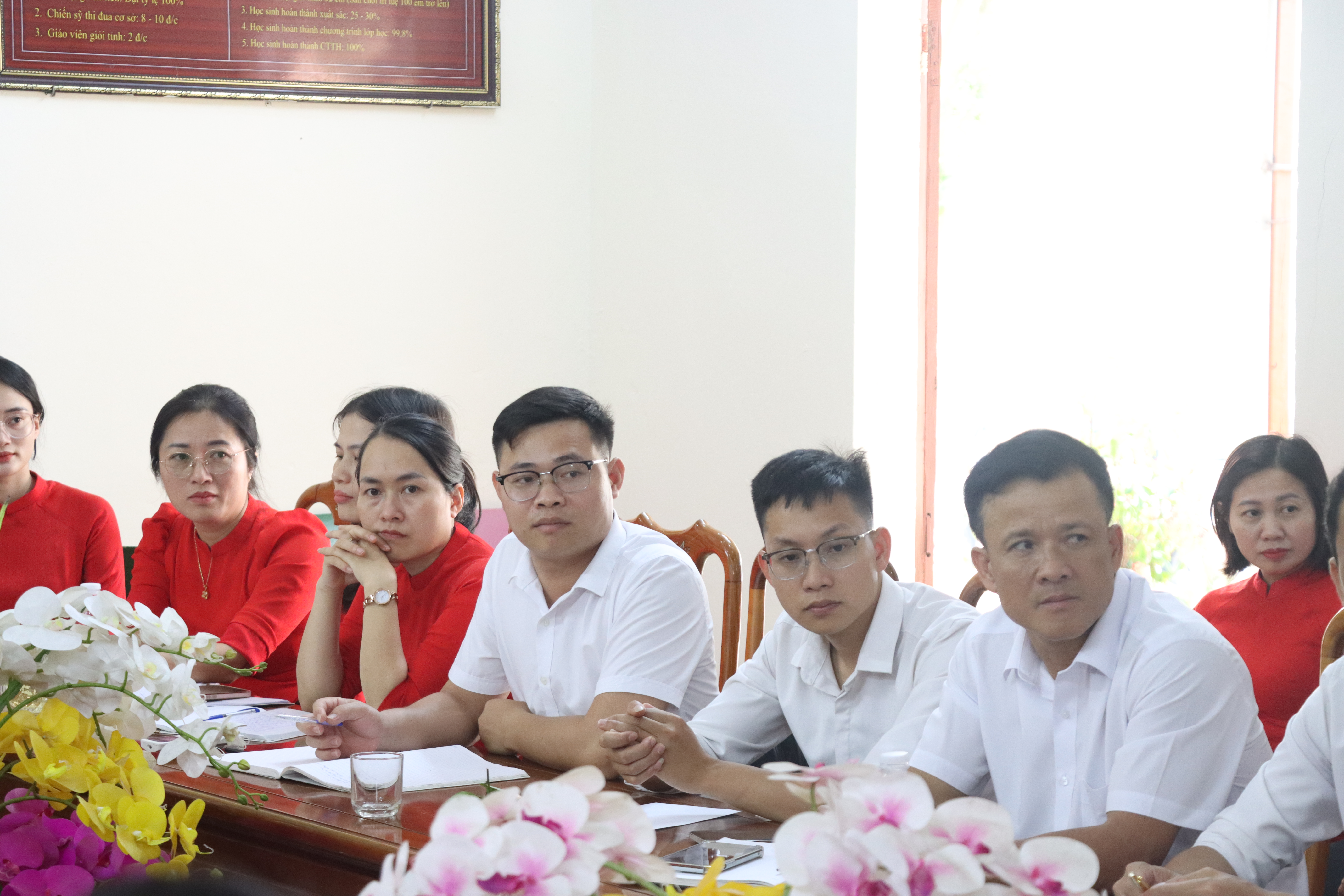 Trong thời gian tới, đồng chí đề nghị nhà trường tiếp tục tranh thủ các nguồn lực để đầu tư hoàn thiện cơ sở vật chất, đặc biệt là xây dựng nhà đa năng phục vụ các hoạt động dạy học và giáo dục toàn diện. Đồng thời, đẩy mạnh ứng dụng công nghệ thông tin, chuyển đổi số trong quản lý và giảng dạy; tăng cường công tác xã hội hóa giáo dục; chủ động tham mưu với cấp ủy, chính quyền địa phương nhằm huy động các nguồn lực hợp pháp, hướng tới xây dựng nhà trường ngày càng phát triển vững mạnh, hiện đại, đáp ứng yêu cầu đổi mới giáo dục trong giai đoạn hiện nay.