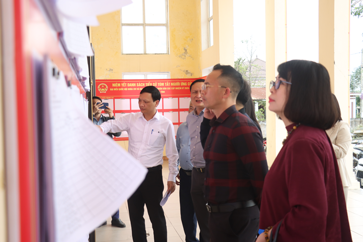 Trước khi tổ chức làm việc, Đoàn đã trực tiếp kiểm tra công tác tuyên truyền bầu cử tại Hội trường thôn Đông Sơn, Bắc Sơn và Tuần Tượng (xã Kỳ Xuân).