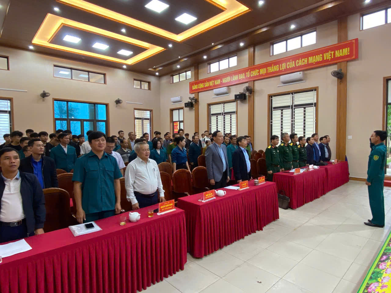 Về phía lãnh đạo địa phương, tham dự buổi lễ có đồng chí Nguyễn Xuân Thắng - Phó Bí thư TT Đảng ủy; đồng chí Lê Tài Tuấn - Phó Bí thư - Chủ tịch UBND xã - Chủ tịch Hội đồng nghĩa vụ quân sự xã; cùng các đồng chí trong Ban Thường vụ Đảng ủy, Thường trực HĐND, UBND, Ủy ban MTTQ xã; Hội đồng NVQS xã; đại diện các ban, ngành, đoàn thể, Bí thư Chi bộ, Trưởng thôn, thôn đội trưởng và các công dân trong độ tuổi thực hiện nghĩa vụ Quân sự, nghĩa vụ tham gia Công an nhân dân năm 2026.