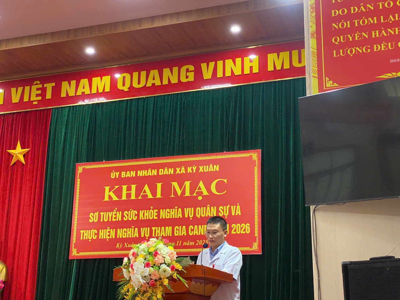 Phát biểu khai mạc, đồng chí Chủ tịch UBND xã, Chủ tịch Hội đồng nghĩa vụ quân sự xã nhấn mạnh: Công tác tuyển quân là một nội dung hết sức quan trọng trong công tác Quân sự Quốc phòng của địa phương, đòi hỏi sự vào cuộc của cả hệ thống chính trị từ xã đến thôn. Việc triển khai tổ chức thực hiện phải bảo đảm nghiêm túc, chặt chẽ, dân chủ, công khai, minh bạch, rõ ràng, đúng luật ngay từ khâu rà soát, đăng ký đến công tác quản lý, sơ tuyển, khám tuyển và giao quân.