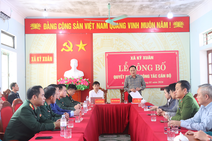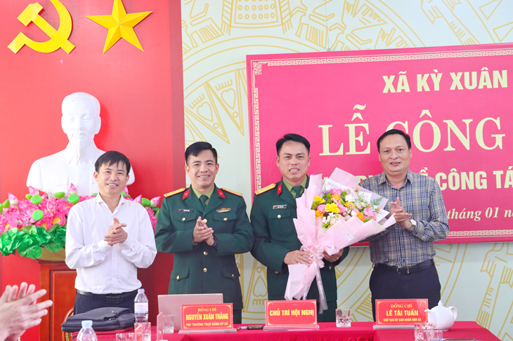 Tại hội nghị, lãnh đạo Ủy ban nhân dân xã Kỳ Xuân đã công bố các Quyết định của UBND tỉnh về miễn nhiệm chức vụ Chỉ huy Trưởng, Phó Chỉ huy trưởng, Chính trị viên phó, Trợ lý của Ban Chỉ huy quân sự cấp xã. Đồng thời, công bố Quyết định của Quân khu 4 về việc bổ nhiệm Trung tá Bùi Thế Anh – Phó Tham mưu trưởng, BCH PTKV 3- Kỳ Anh, Bộ CHQS tỉnh Hà Tĩnh giữ chức Chỉ huy Trưởng Ban CHQS xã Kỳ Xuân.