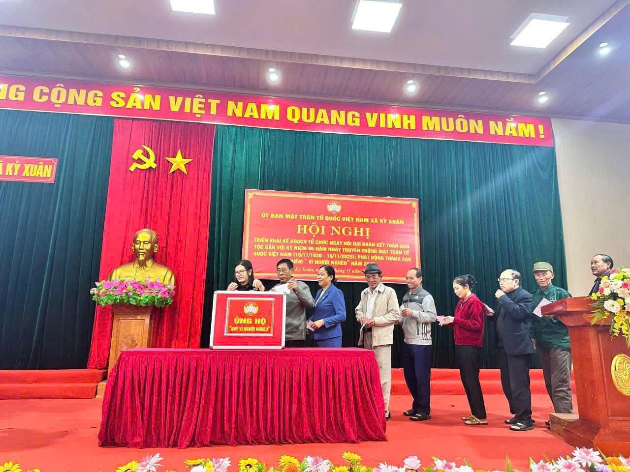 Ngày 04/11/2025, Ủy ban MTTQ Việt Nam xã Kỳ Xuân tổ chức Lễ phát động tháng cáo điểm “Vì người Nghèo” năm 2025. Tháng cao điểm "Vì người nghèo" diễn ra từ ngày 17.10 đến 18.11.2025. Nội dung Hướng dẫn nêu rõ, việc triển khai Tháng cao điểm “Vì người nghèo” năm 2025 nhằm tăng cường khối đại đoàn kết toàn dân tộc, phát huy truyền thống vẻ vang của Mặt trận Tổ quốc Việt Nam, tạo không khí sôi nổi nhằm thiết thực chào mừng kỷ niệm 95 năm Ngày thành lập Mặt trận Dân tộc Thống nhất Việt Nam (18.11.1930 - 18.11.2025) và Ngày hội Đại đoàn kết toàn dân tộc, chào mừng Đại hội Đảng Toàn quốc lần thứ XIV, Đại hội Đại biểu Mặt trận Tổ quốc Việt Nam các cấp nhiệm kỳ 2025 - 2030.