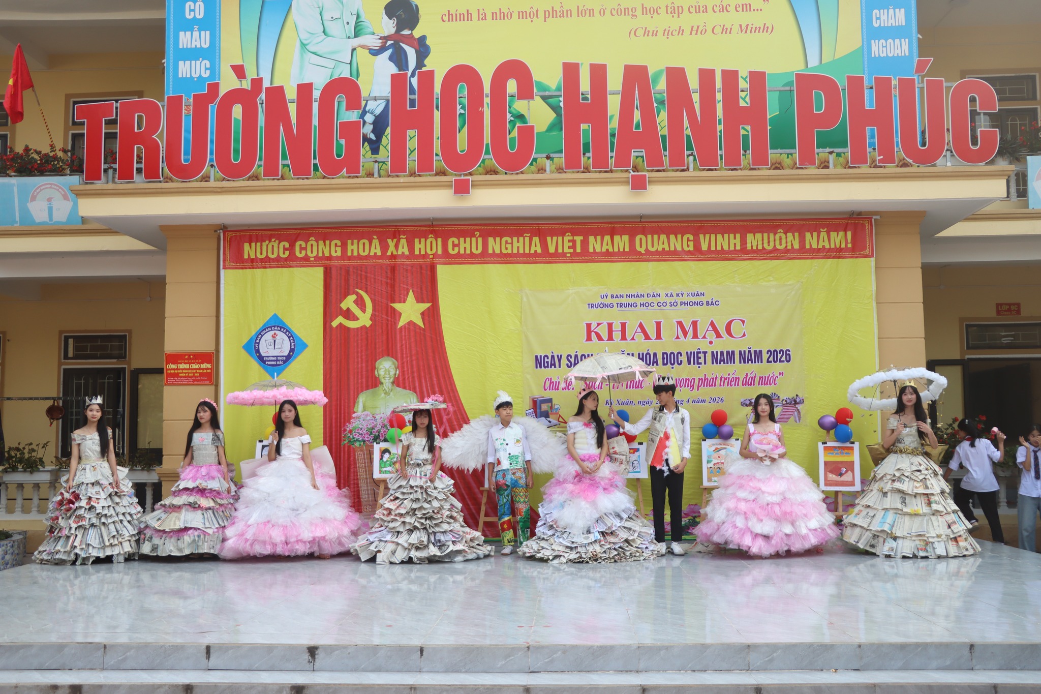 Đặc biệt, phần trình diễn thời trang tái chế đã thu hút sự quan tâm và cổ vũ nhiệt tình của đông đảo đại biểu, giáo viên, phụ huynh và học sinh. Từ những vật liệu tưởng chừng đã bỏ đi như giấy báo, bao ni lông, bìa carton, chai nhựa…, dưới bàn tay khéo léo và óc sáng tạo của các em học sinh, đã trở thành những bộ trang phục độc đáo, đầy màu sắc và mang nhiều thông điệp ý nghĩa. Ngày hội Sách và Văn hóa đọc tại Trường THCS Phong Bắc không chỉ góp phần lan tỏa phong trào đọc sách trong nhà trường mà còn xây dựng thói quen đọc sách, hình thành nét đẹp văn hóa học đường, giúp học sinh rèn luyện kỹ năng tự học, đáp ứng yêu cầu đổi mới căn bản, toàn diện giáo dục trong giai đoạn hiện nay.