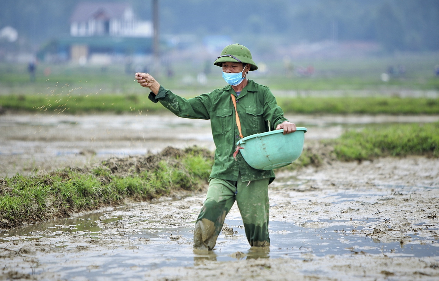 Cùng với hoạt động gieo cấy, người dân còn chủ động làm bạt che, dựng rào chắn để phòng tránh chuột phá hoại, bảo vệ diện tích lúa sắp gieo cấy.