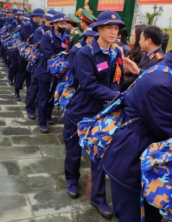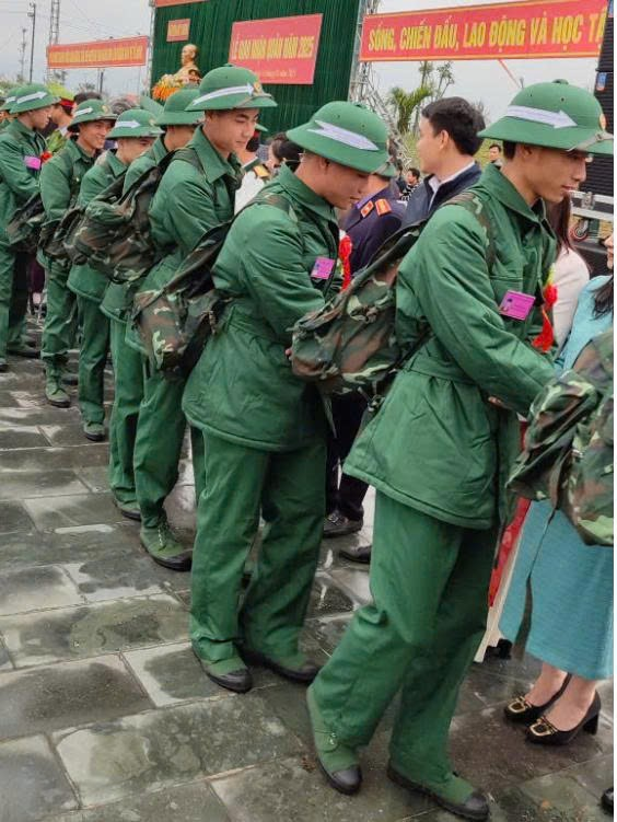(Thanh niên phấn khởi lên đường làm nhiệm vụ bảo vệ Tổ quốc)