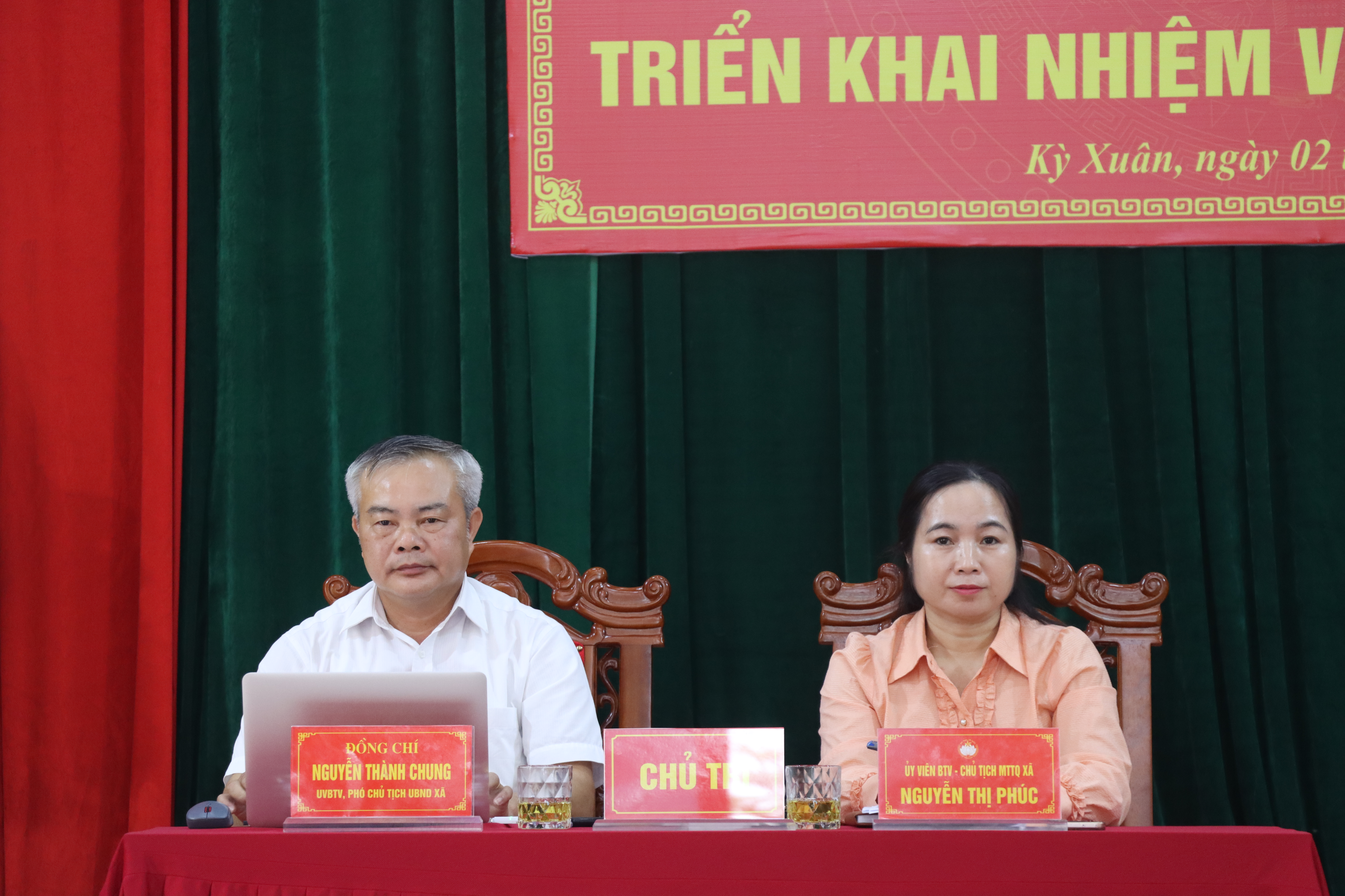 Các đồng chí Nguyễn Thành Chung – UVBTV, Phó Chủ tịch UBND xã; đồng chí Nguyễn Thị Phúc – UVBTV, Chủ tịch UB MTTQ.