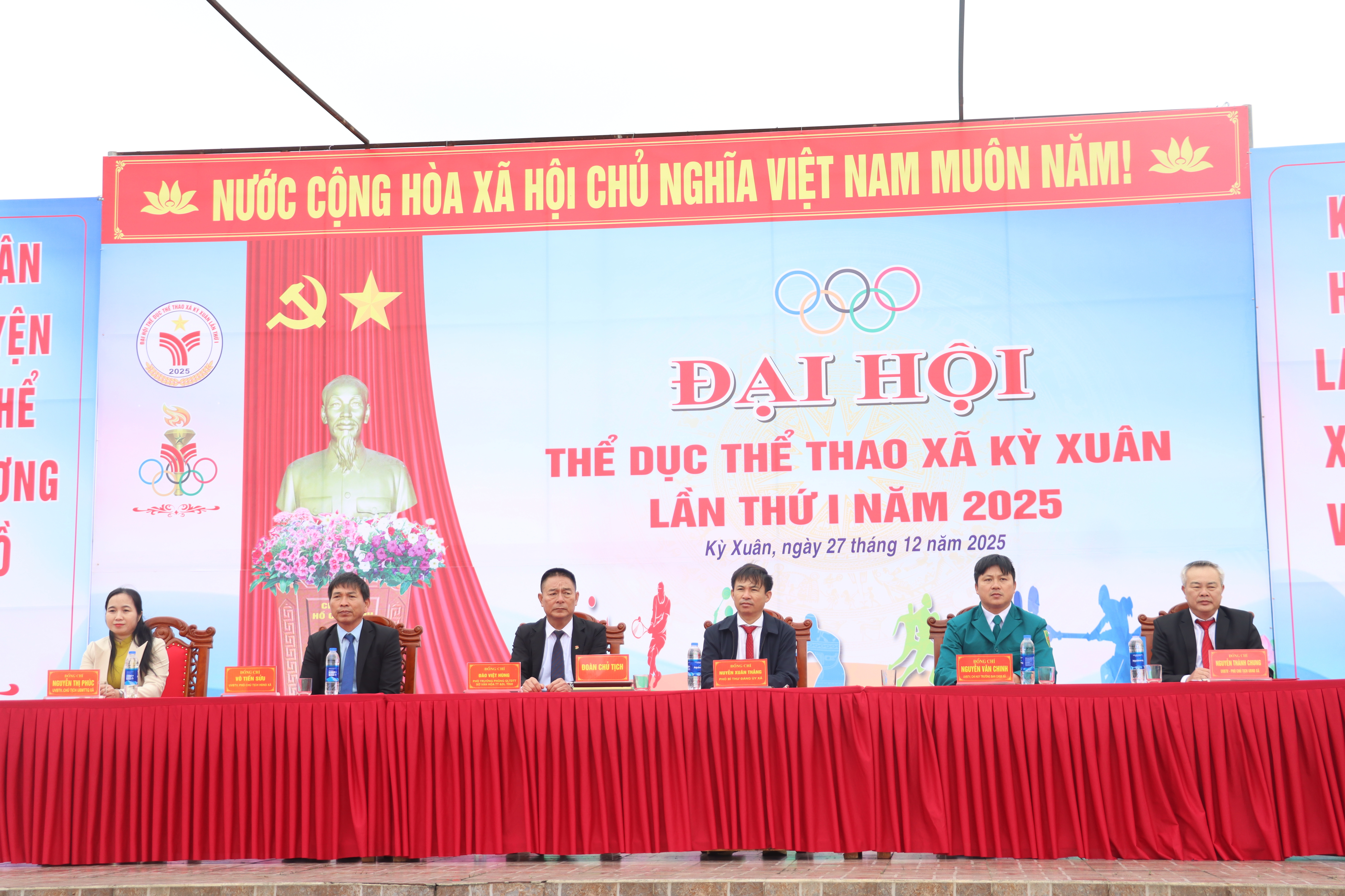 Về tham dự có đồng chí Đào Việt Hùng - Phó Trưởng phòng quản lý Thể dục thể thao, Sở Văn hóa, Thể thao và Du lịch tỉnh. Ở xã Kỳ Xuân, có đồng chí Nguyễn Xuân Thắng - PBT TT Đảng ủy xã; các đồng chí trong BTV, Ban Chấp hành Đảng ủy; Mặt trận Tổ quốc và các tổ chức chính trị, xã hội; Hiệu trưởng các trường học, trưởng Trạm Y tế, Bí thư, thôn trưởng các thôn, các doanh nghiệp đóng trên địa bàn; đông đảo vận động viên đến từ các thôn và đông đảo bà con nhân dân xã nhà.