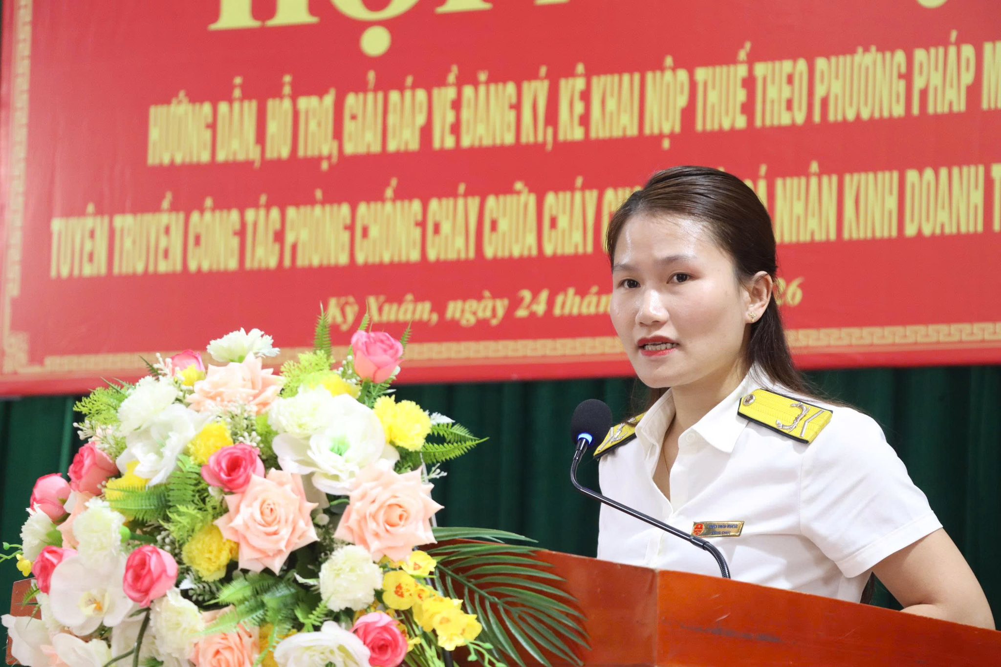 Tại hội nghị, cán bộ thuế đã trực tiếp hướng dẫn quy trình, hồ sơ, thủ tục đăng ký, kê khai và nộp thuế; giải đáp các nội dung liên quan đến chế độ kế toán hộ kinh doanh. Lực lượng công an xã cũng đã phổ biến quy định pháp luật, hướng dẫn kỹ năng và biện pháp phòng ngừa cháy nổ, góp phần hạn chế rủi ro trong quá trình kinh doanh.
