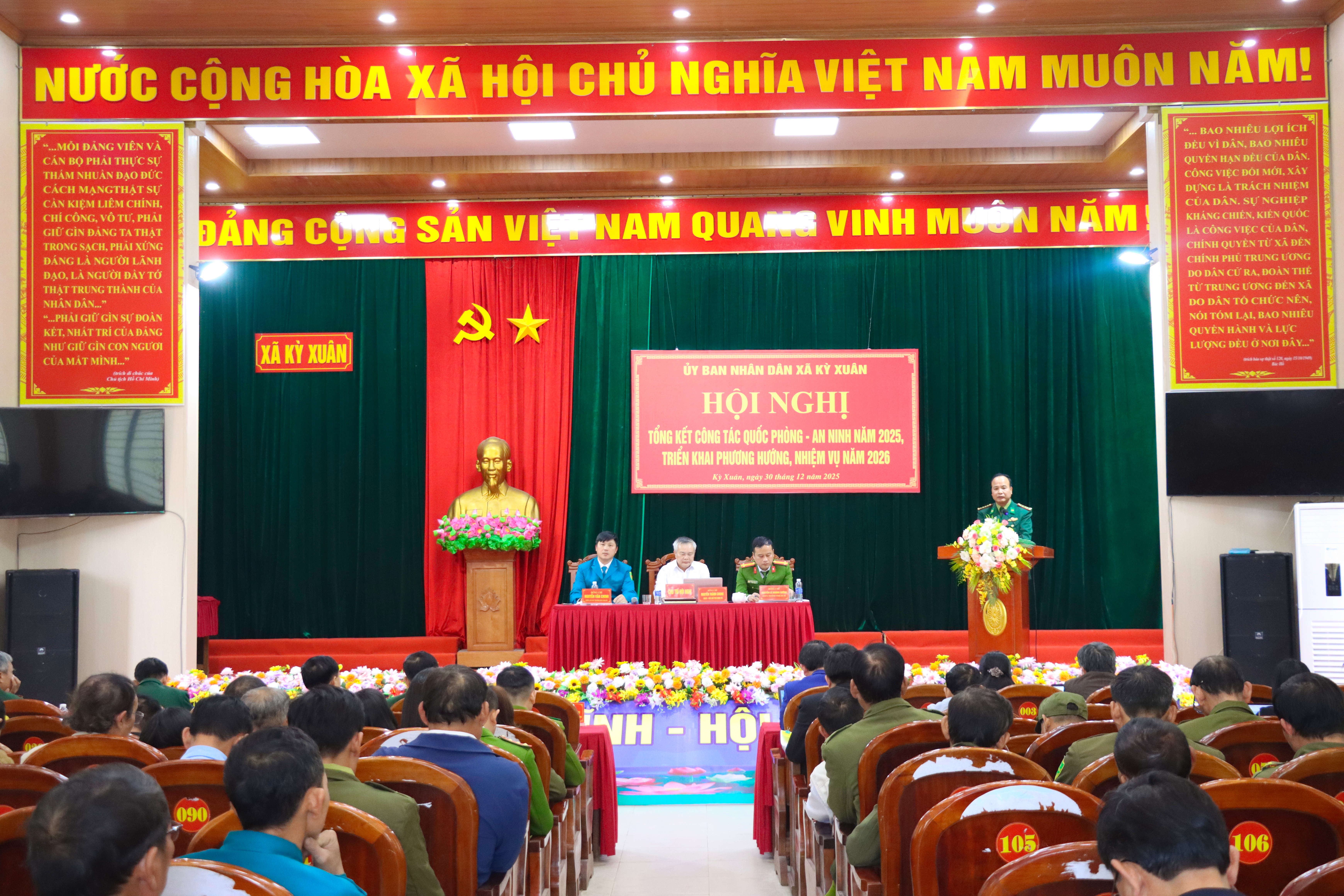 Phát biểu tại Hội nghị, Đại tá Nguyễn Mậu Phúc – Phó Chính ủy Ban Chỉ Huy BĐPB tỉnh đã biểu dương và ghi nhận những kết quả trong công tác An ninh – Quốc phòng xã Kỳ Xuân đã đạt được trong năm 2025.